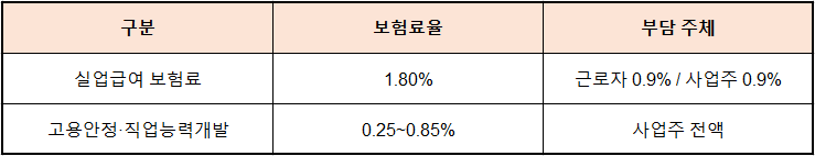 👉 근로자가 실제로 부담하는 고용보험료율은 0.9%입니다.