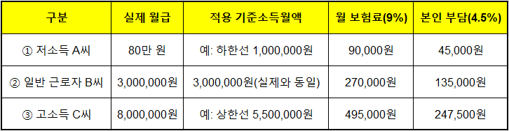 ✔ 월급이 너무 높아도 상한까지만 반영되어 부담이 무한정 늘어나지 않도록 설계된 구조입니다.