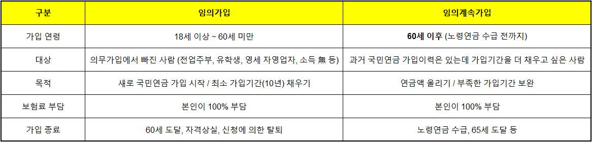 - 🧾 임의가입 = 의무가입이 아닌 사람이 스스로 시작하는 국민연금