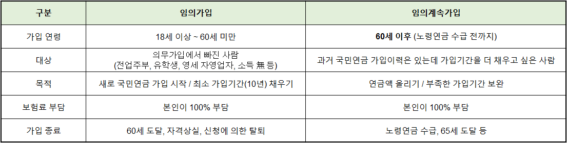 2️⃣ 임의가입 vs 임의계속가입 비교표
