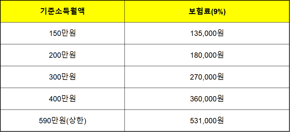 퇴직 직전의 기준소득월액에 따라 보험료가 결정됩니다.