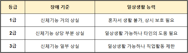- ✔ 병명이 아니라 ‘장애 정도’가 핵심