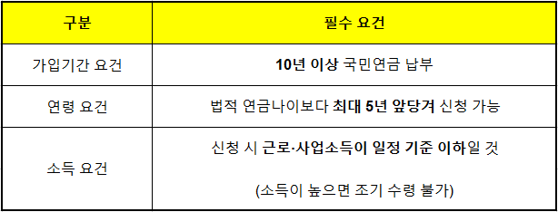2️⃣ 조기연금을 신청하려면 충족해야 하는 조건