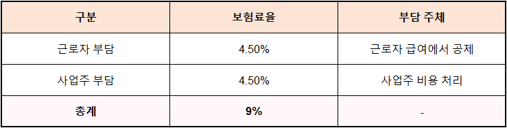 - 💸 보험료는 근로자 4.5% + 사업주 4.5%