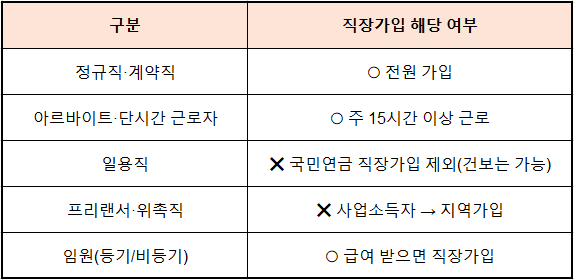 - 🏢 직장가입자는 근로자라면 모두 해당