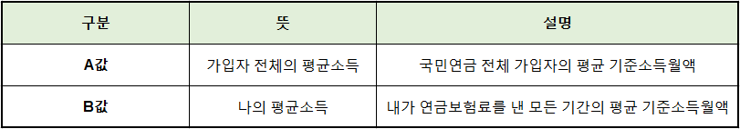 - 📊 연금액 = A값 + B값 × 0.5% × 가입연수