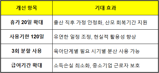 - ③ 분할사용 확대: 신생아 돌봄 시기별 맞춤형 활용 가능