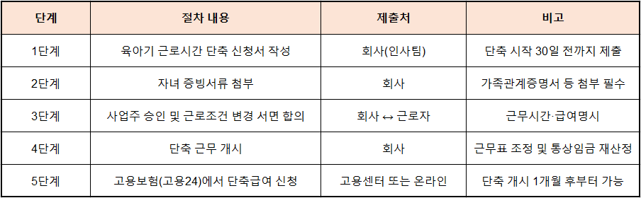 - 📄 필요 서류: 육아기 근로시간 단축 확인서, 급여명세서, 근로계약서