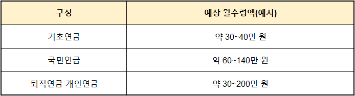 아래는 실제 은퇴자들이 보통 구성하는 노후소득 구조입니다 👇