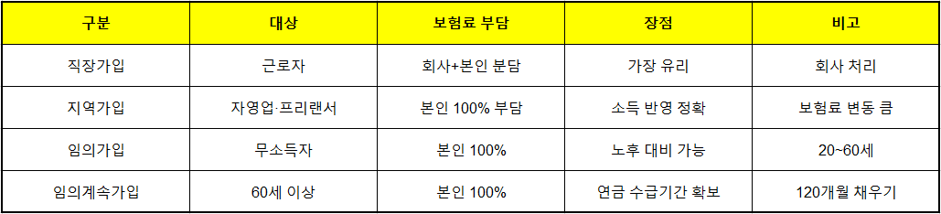 🧩 직장·지역·임의·임의계속가입, 차이와 조건 완벽 이해!