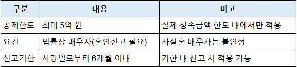 - 배우자공제는 신고기한(6개월) 내 반드시 신청