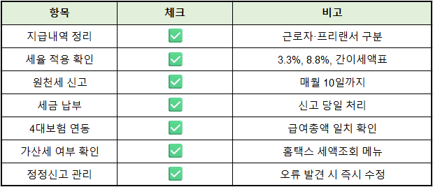 5️⃣ 원천세 관리 체크리스트