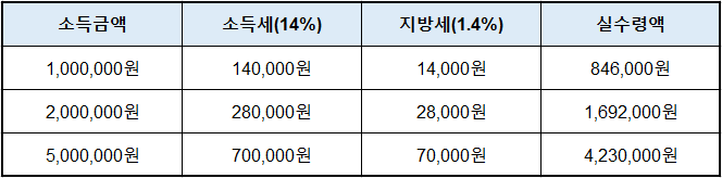 👉 소득세 3% + 지방소득세 0.3%를 합한 비율입니다.