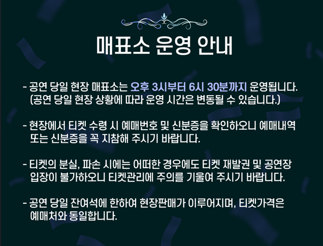- 공연 당일 취소표는 현장 판매로 전환되는 경우가 많음