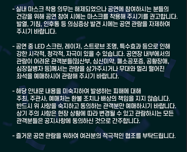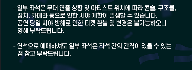 - 모바일보다 PC가 더 빠르므로 가능하면 PC로 예매 진행
