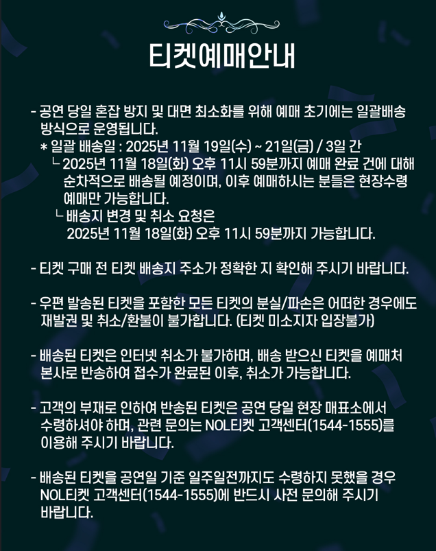| 🎤 대성 콘서트 예매 | 2025 ASIA TOUR D’s WAVE ENCORE - SEOUL (0) | 2025.10.16 |