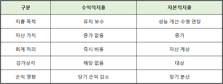 4️⃣ 수익적지출 vs 자본적지출 비교표