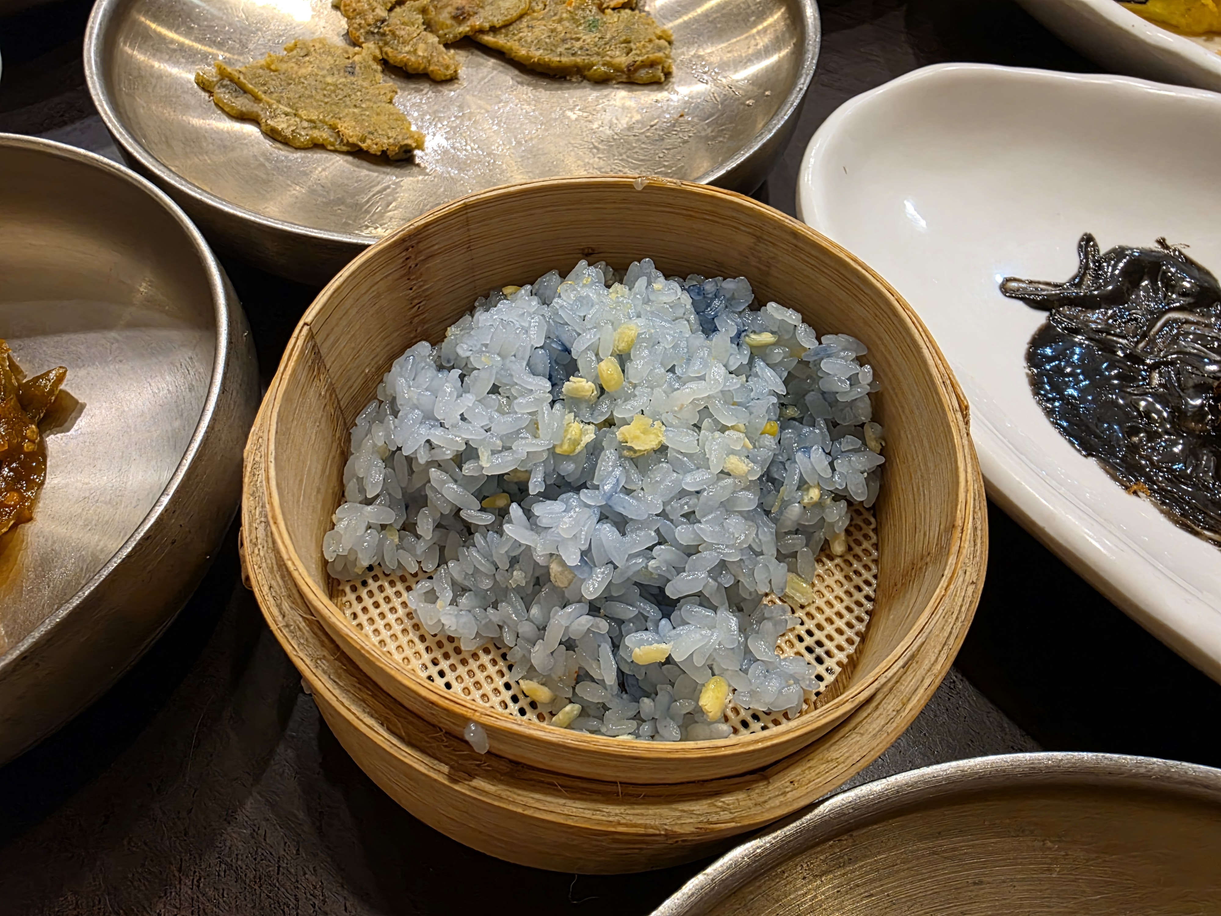 밑 반찬을 다 파란 찰밥과 함께 다 먹고 나니 메인 음식들이 하나씩 하나씩 등장 했어요~