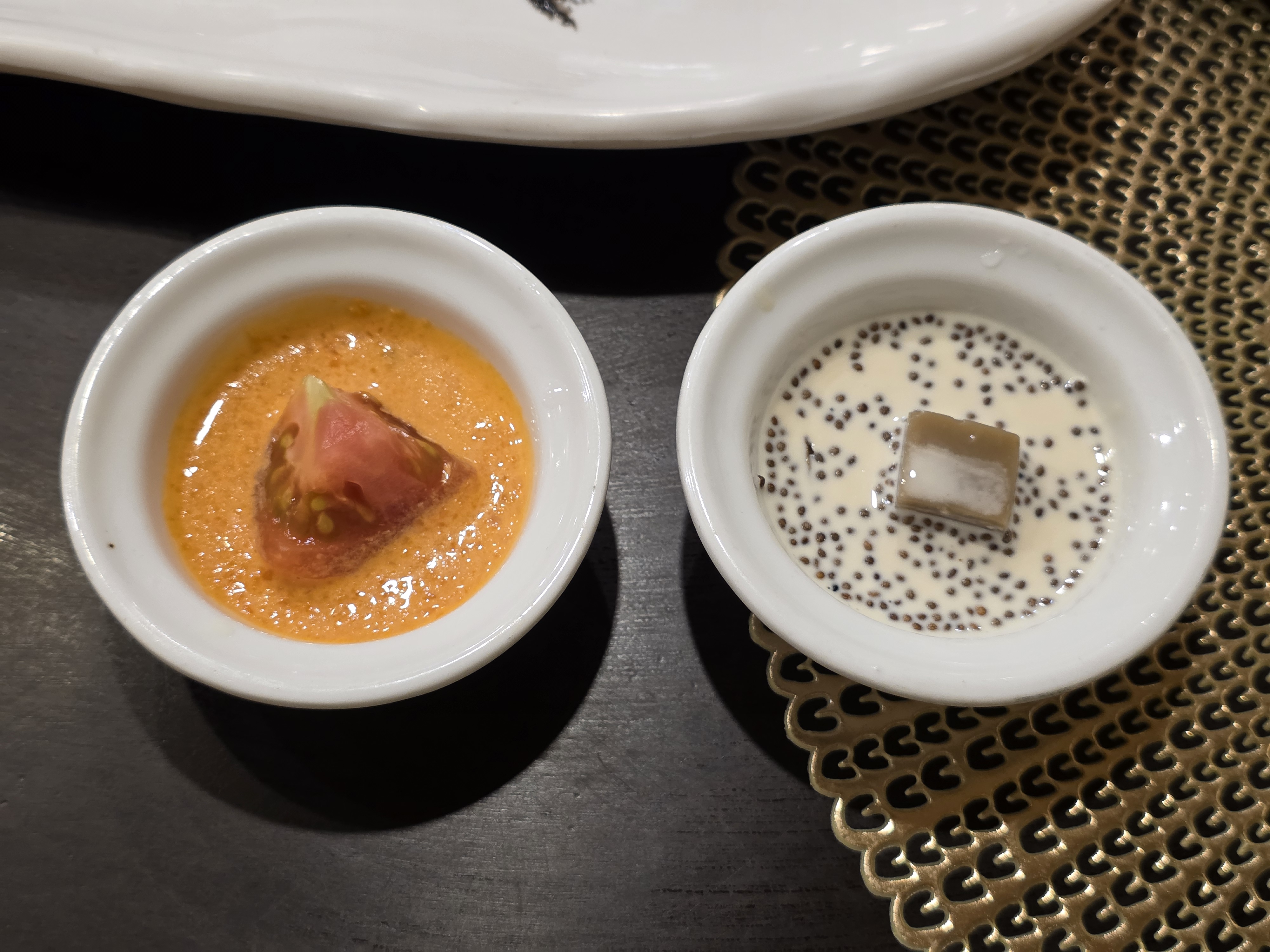 식사는 먼저 당근에 빠진 토마토, 들깨수제도토리묵 이 나왔구요.