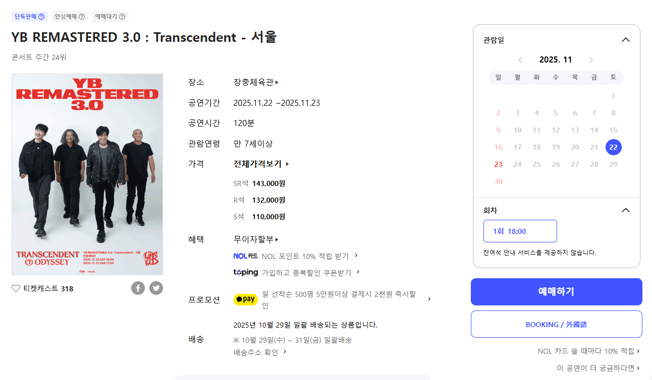- 공연명: YB REMASTERED 3.0 : Transcendent - 서울