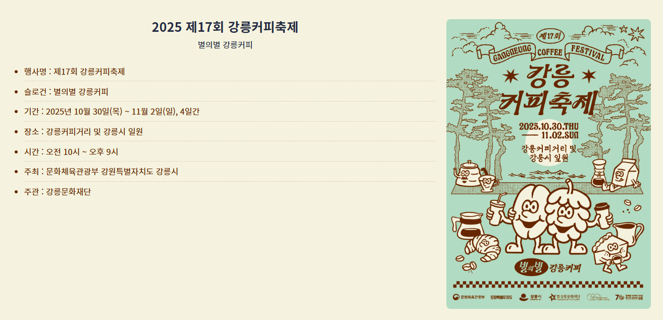 ☕2025 제17회 강릉커피축제 – 별의별 강릉커피, 바다와 커피의 향연