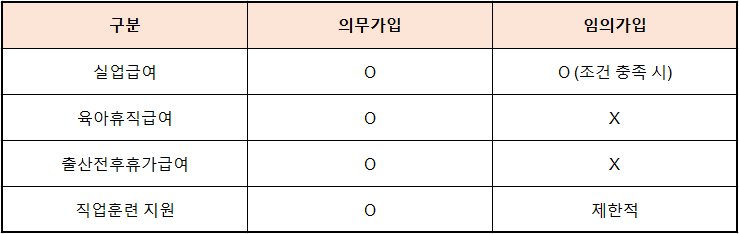 즉, 임의가입은 ‘완전한 고용보험’이 아니라 ‘축소판’에 가깝습니다.