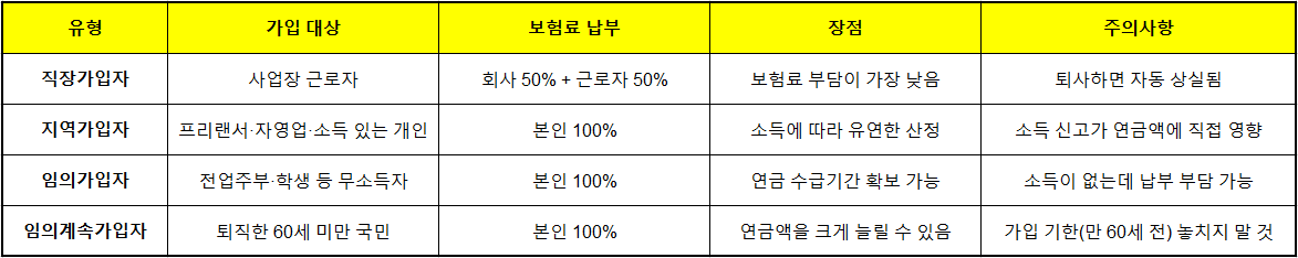 - 👥 국민연금 가입유형은 총 4종류