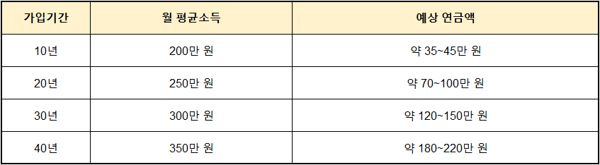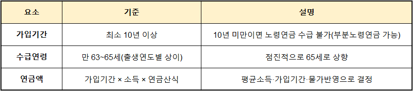 - ⏱ 가입기간 10년 이상 → 노령연금 수령 가능