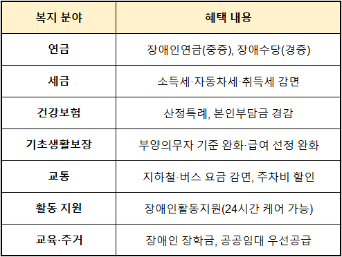 2️⃣ 장애연금 수급자가 받을 수 있는 장애·복지 혜택 총정리