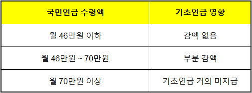 - ✔ 기초연금은 국민연금 수령액보다 ‘소득인정액’이 핵심