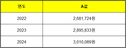 ➡ 즉, 국가 전체의 평균소득 수준이 A값으로 반영되는 구조입니다. 개인이 바꿀 수 있는 값이 아니며, 매년 1번 정해져요.