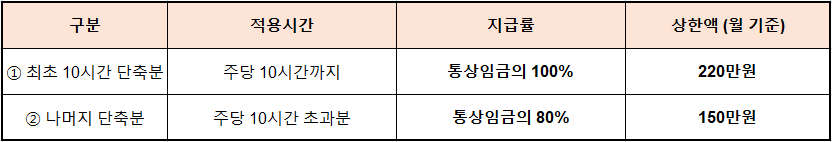 - 📌 최초 10시간 단축분: 통상임금 100%, 상한 220만원