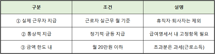 - 💡 근로자 입장: 소득세·지방세 면제 → 실수령액 증가
