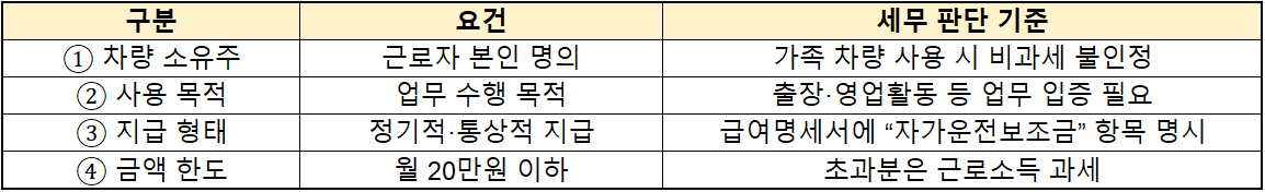2️⃣ 자가운전보조금 비과세 요건