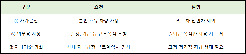 - 🏢 대상: 자가 차량을 실제로 업무에 사용하는 근로자