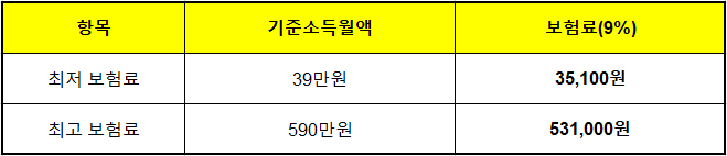 - 보험료 = 기준소득월액 × 9%