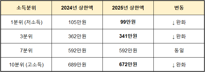 본인부담상한제는 1년간 본인이 낸 의료비가 일정금액을 초과하면 그 초과액을 공단이 환급해주는 제도입니다. 2025년부터는 소득 1~5분위 저소득층 환급 한도가 낮아지고, 고소득층은 상한이 소폭 상향되었습니다.