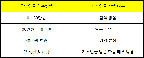 - 📌 기초연금만 국민연금액에 따라 감액 가능성