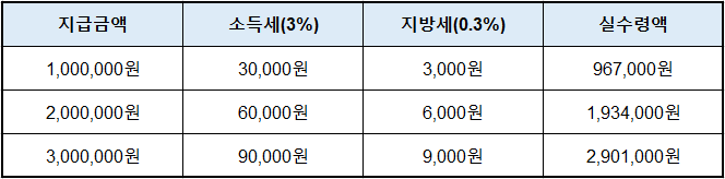 3️⃣ 프리랜서(사업소득) 원천세율