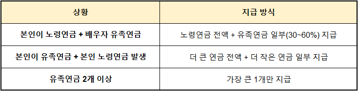 - 👥 유족연금 + 노령연금은 일부 중복 가능