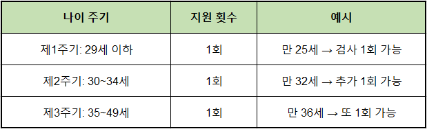 - 📌 연령 주기별 1회, 최대 3회 지원