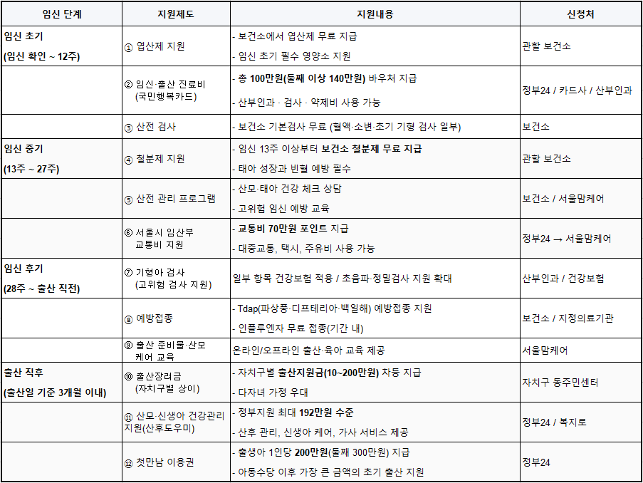 📌 임신 단계별 서울시 복지 지원 총괄표