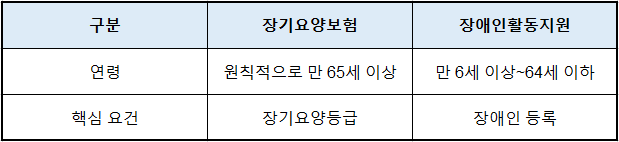 즉, 노인 중심 vs 장애 중심이라는 출발선부터 다릅니다.