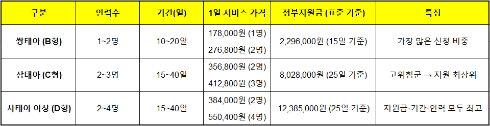 - 👶 다태아는 지원기간·인력·지원금 전부 상향