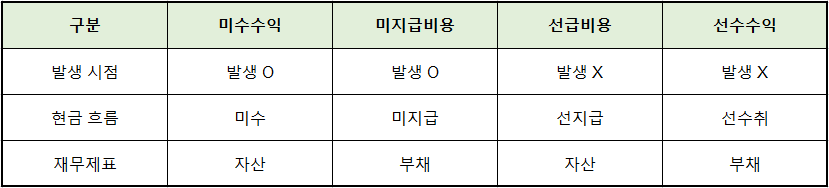 6️⃣ 미수·미지급 vs 선급·선수 구분