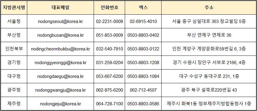 - 또는, 관할 지방고용노동관서로 직접 문의