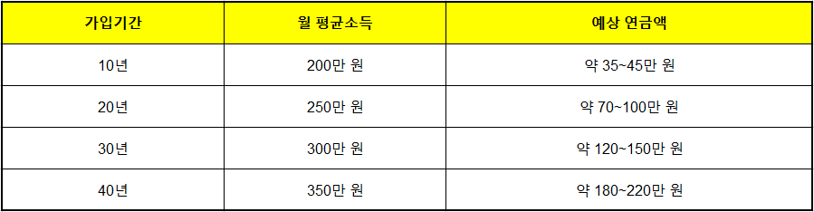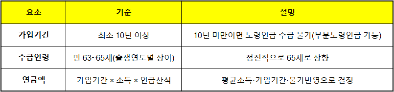 - ⏱ 가입기간 10년 이상 → 노령연금 수령 가능