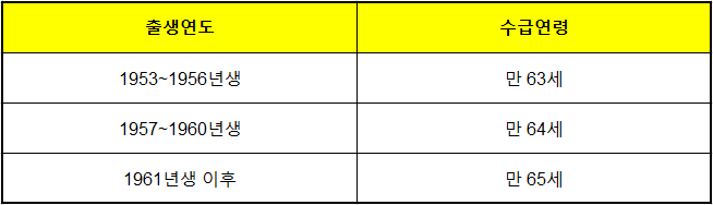 - 🎂 1961년생 이후는 만 65세부터 수령