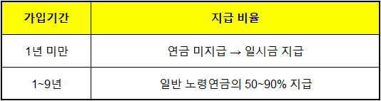 - 국민연금 가입기간이 1개월 이상 ~ 10년 미만일 것