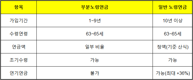 7️⃣ 부분노령연금 vs 일반 노령연금 비교